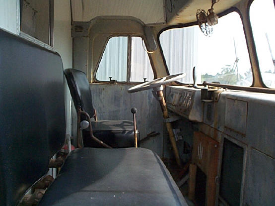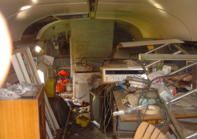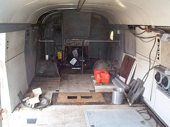 The interior. Unfortunately, the previous owner ripped out the equipment racks and custom cabinets. Although we can see where they used to be, we are not sure what they are supposed to look like. If you happen to have any pictures, please contact us. When we got it, it was full of junk up to the tops of both seats. It took over two full sized dumpsters to dispose of all the junk. Of course, we had to sort through everything to keep the stuff that belonged here. It was a several day affair just going through it.