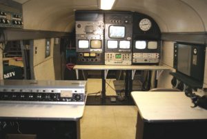 This Telecruiser was used by Channel 8 from 1949 until about 1972. Over the years quite a few updates took place . Since vintage 1949 DuMont Equipment is in very short supply, I’ve taken the liberty of restoring the electronics to 1960’s “state of the art.” Some of the equipment you see here was actually in the Telecruiser. This is a work in progress. There is still a lot to do, but it is exciting to see actual images on the monitors!